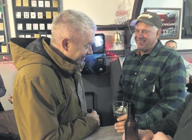 Richard DeBolt, right, chats with Edward Jones Financial Advisor Derek Burger during Tuesday’s retirement celebration. Photos by Michael Wagar